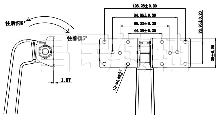 电脑显示屏转轴,转轴和底座一体化,底座使用锌合金压铸件,表面镀锘,外观精美大方,转轴可整体提供底座转轴方案。