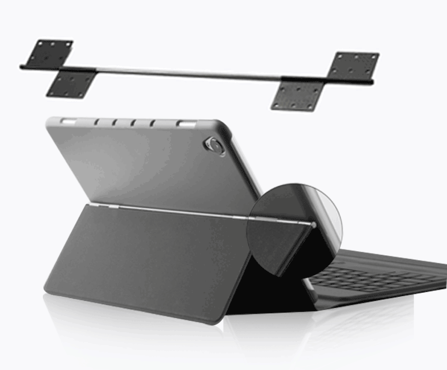 二合一笔记本皮套转轴,轻薄不突兀,外观时尚简约,有阻尼感的同时又相当稳固。