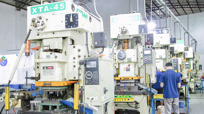 精密引进十余台台湾冲床及系列模具制造设备,具备精密冲压模具的设计与制作、精密五金冲压件生产的能力。且冲压团队拥有超过十年的从事模具设计与制造到批量生产及样板制造经验,具有较强的新产品、新工艺开发和生产能力。精密的冲压事业部,不仅完善了精密五金转轴的配套工艺和生产能力,而且独立的冲压产品线如卡扣、支架、箱体等冲压折弯、冲压拉伸成型冲压工艺也开发得很成熟。